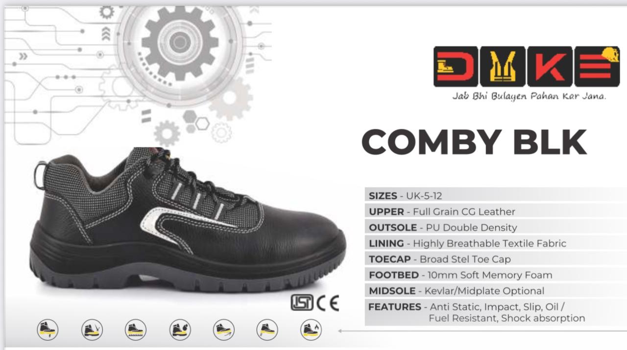 Design : Derby Standard– ISI -15298 II, EN-ISO20345-2011 Upper: Buff Grain Leather Lining : Soft, Breathable, Sweat absorbing Cambrelle lining Insole : Durable and Comfortable Nonwoven Toe: Safety Toe cap Meets Steel Toe200 Joules Sole : PU Double density, hardness : 55-60 Shore Features : Impact Resistant, Anti Static, Slip Resistant, Oil/Fuel Resistant, Shock absorption, Nail Proof Optional, Energy absorbing Heel, Heat Resistant.