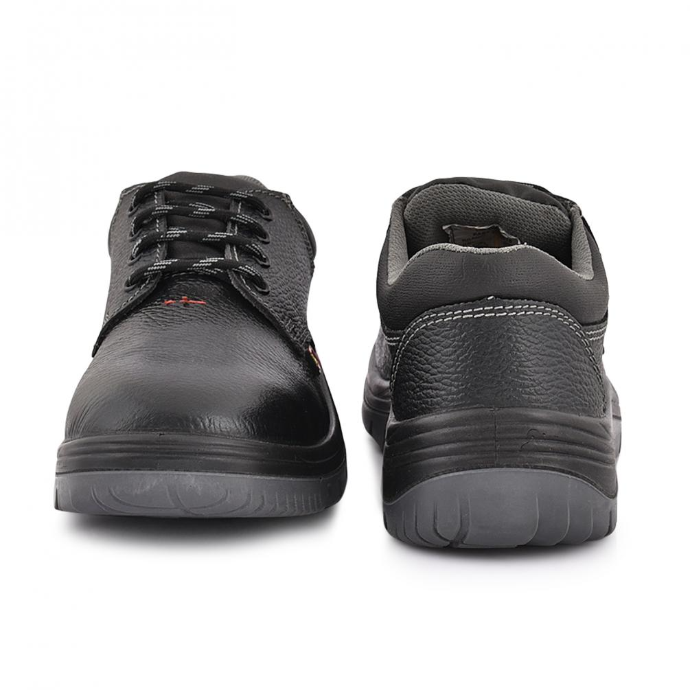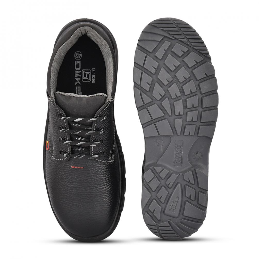 Details design : Derby Standard– ISI -15298 II, EN-ISO20345-2011 Upper: Buff Grain Leather Lining Soft, Breathable, Sweat absorbing Cambrelle lining Insole to control Moisture : Durable and Comfortable Nonwoven Toe: Safety Toe cap Meets Steel Toe200 Joules Sole : PU Double density, hardness: 55-60 Shore Features: Impact Resistant, Anti Static, Slip Resistant, Oil/Fuel Resistant, Shock absorption, Nail Proof Optional, Energy absorbing Heel, Heat Resistant.
