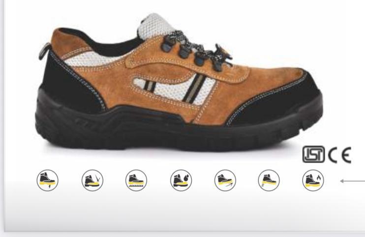 Design : Derby Standard– ISI -15298 II, EN-ISO20345-2011 Upper: Buff Grain Leather Lining : Soft, Breathable, Sweat absorbing Cambrelle lining Insole : Durable and Comfortable Nonwoven Toe: Safety Toe cap Meets Steel Toe200 Joules Sole : PU Double density, hardness : 55-60 Shore Features : Impact Resistant, Anti Static, Slip Resistant, Oil/Fuel Resistant, Shock absorption, Nail Proof Optional, Energy absorbing Heel, Heat Resistant.