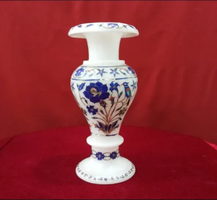 Material - Primarily white marble, inlaid with stones like lapis lazuli, turquoise, carnelian, and jasper.
